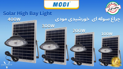 چراغ سولهای خورشیدی ۴۰۰ وات مودی گزینهای عالی برای روشنایی فضایهای صنعتی، سولهها، سالنها، کارگاهها و محیطهایی است که دسترسی به برق شهری دشوار است یا میخواید هزینه برق را کاهش دهید.